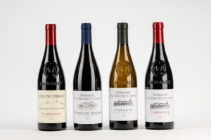 Le domaine les Hautes Cances s’établit sur 18 hectares. Les parcelles en appellation Cairanne se situent principalement sur les hauteurs de l’appellation, notamment autour du Col du Débat. Elles s’épanouissent en côteaux versant nord, exposées au Mistral. Elles bénéficient d’une fraîcheur idéale que nous recherchons dans nos vins. D’autres parcelles, situées près du village, se trouvent sur les terrasses de l’Aygues et les Garrigues, offrant élégance et fruité.